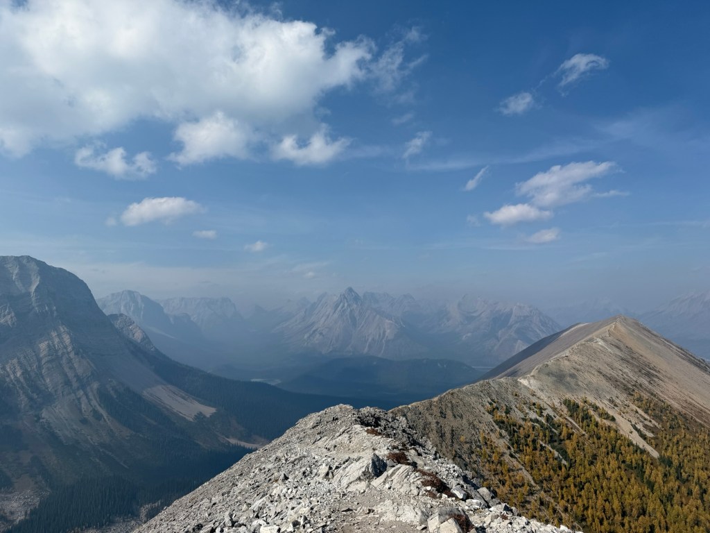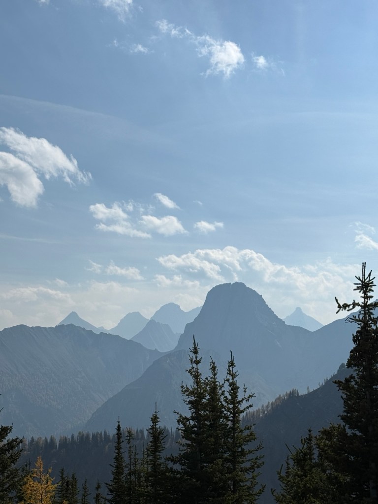 Because this trip was last minute, nothing was planned and we didn’t know where we would camp or what hikes we would do, but since it’s prime larch time (end of September), I did some research to see where would be best for a larch-filled hike. Unfortunately, I couldn’t get a booking for Moraine Lake in Banff, so Kananaskis became the focus and I found the perfect trail!