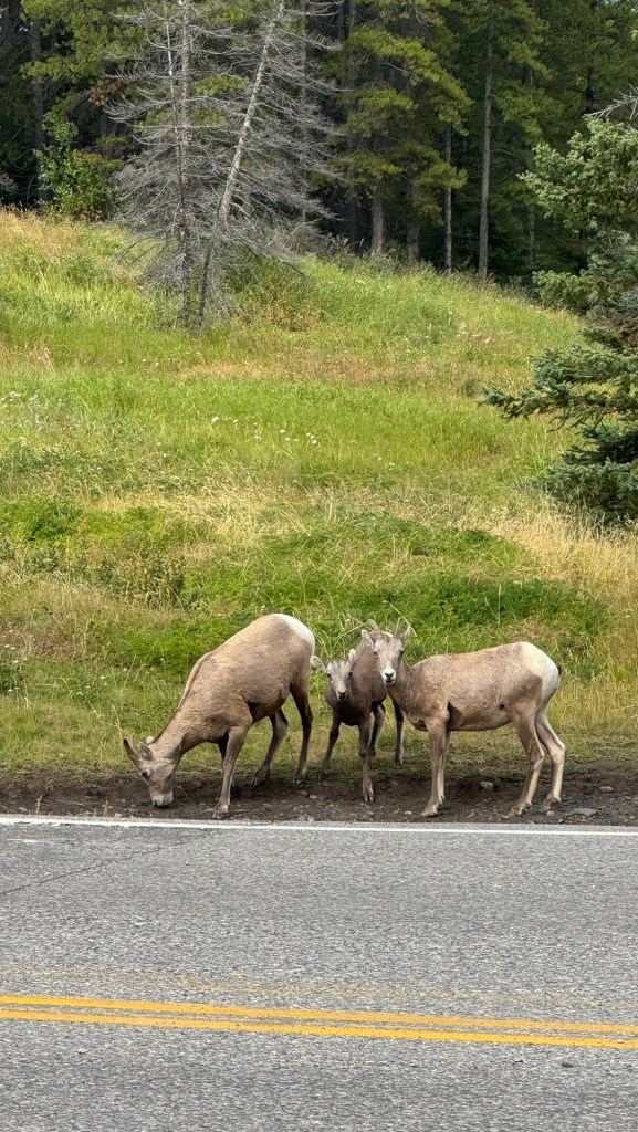 During our road trip in which we were primarily in Banff National Park, we decided to venture a little further to Kananaskis as I was intrigued by this hike to a hot springs on top of a mountain. On the drive, we finally saw some wildlife – a herd of female big horn sheep and some deer, as well as a coyote on the way home. In our 9 day trip, this was one of just two times we spotted any animals!